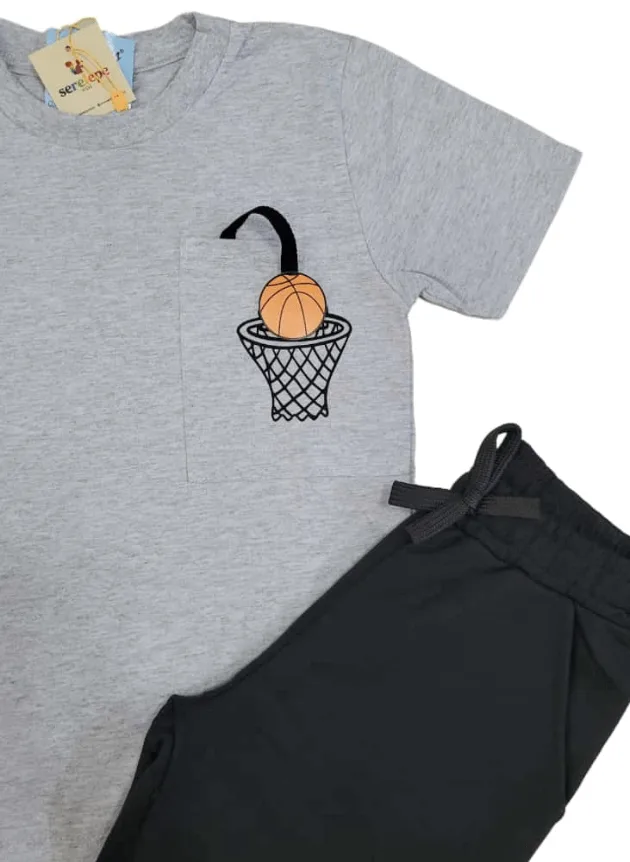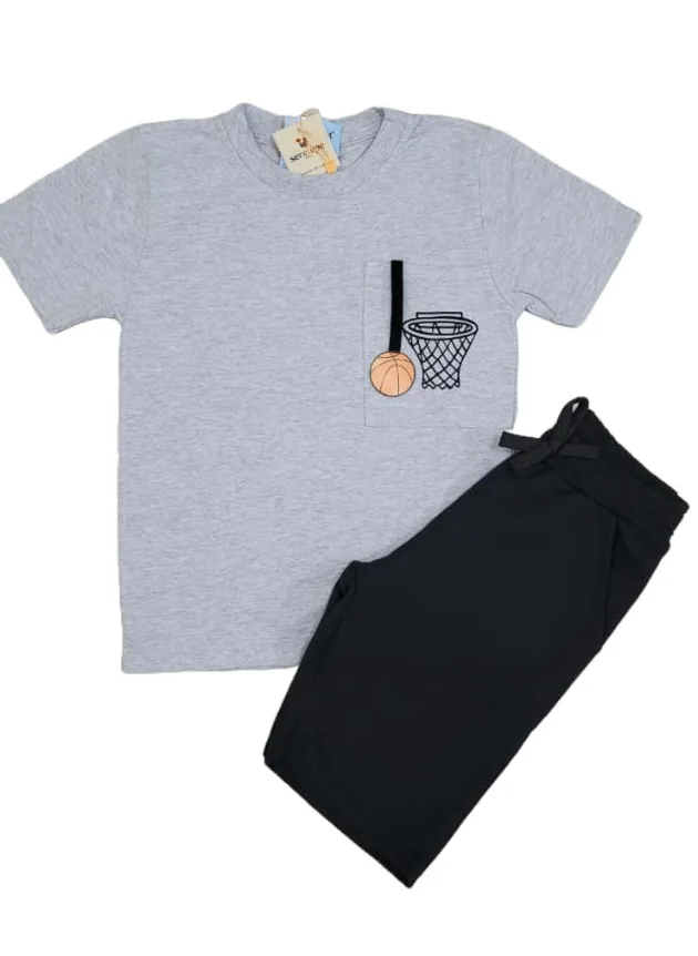 CJ CAMISETA MEIA MALHA BASQUETE C/ BERMUDA MOLETINHO